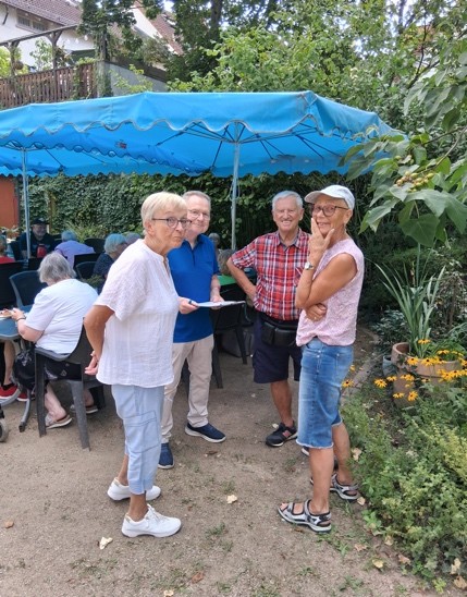 Einen wunderschönen und von den Temperaturen angenehmen sonnigen Sommertag bescherte uns der Wettergott zu unserem diesjährigen Grillfest. Wie schon in den vergangenen Jahren, so war auch in diesem Jahr das Interesse sehr groß so das wir über 50 Gruppenteilnehmende, Angehörige sowie einige Gäste begrüßen durften. Die idealen Räumlichkeiten dazu stellte uns das Haus der Senioren in Rüsselsheim zur Verfügung. Nachdem die üblichen Vorbereitungen (Bestuhlung, Sonnenschutz etc.) erledigt waren, konnte man zum gemütlichen Teil über gehen. Ab 14.00 Uhr trafen dann nach und nach alle Teilnehmenden ein. Zunächst war natürlich die erste Stärkung mit Kaffee und Kuchen bei allen angesagt. Ein besonderer Dank geht an die Damen Hildegard Lasenga, Silke Stoye und Helga Kretschmer für die tollen gespendeten Kuchen. Auch ein herzliches Dankeschön an Beate Seidel und Helga Kretschmer am Kaffee und Kuchen Buffet sowie unserem Grillmeister Roland Libert.