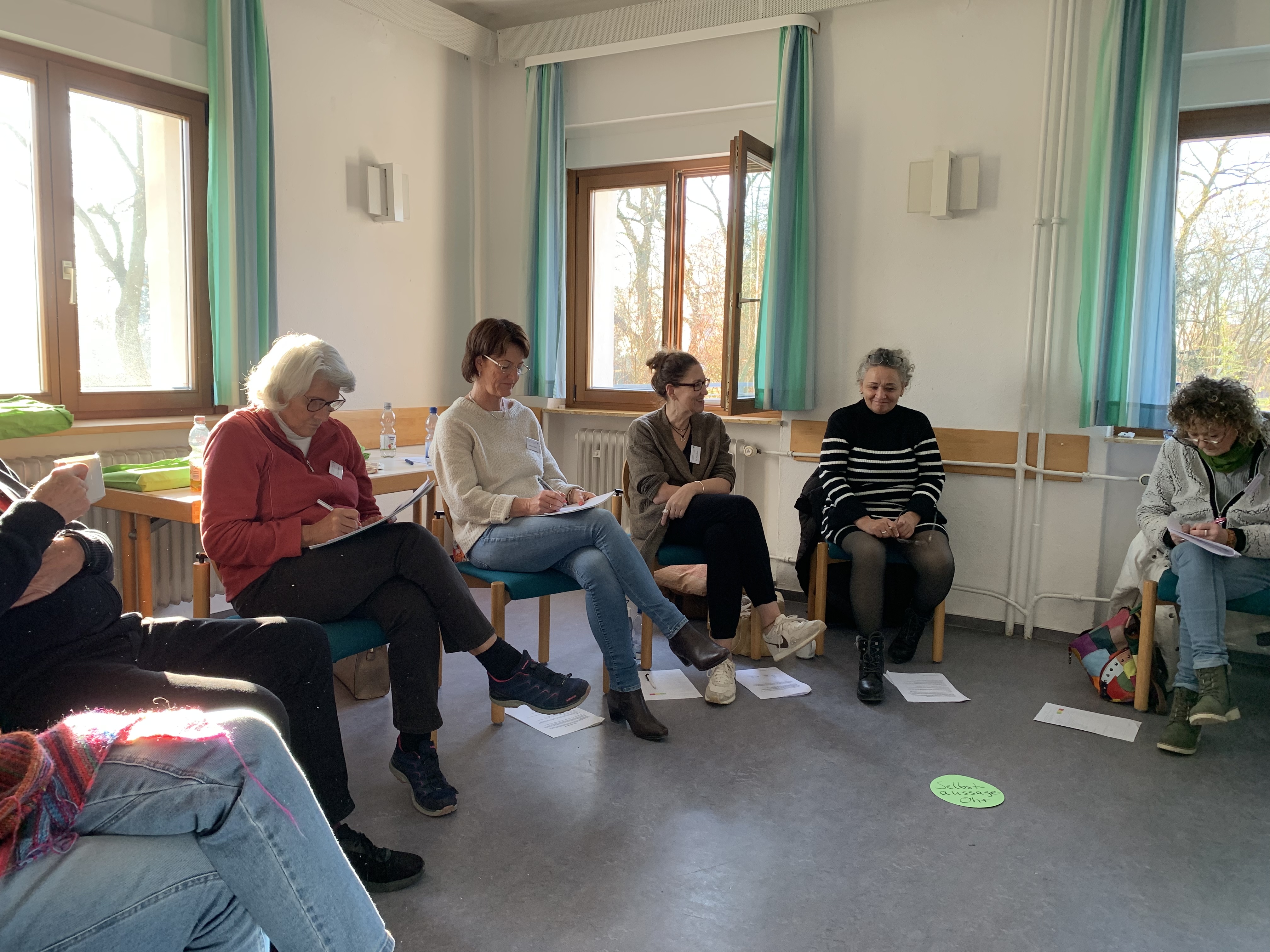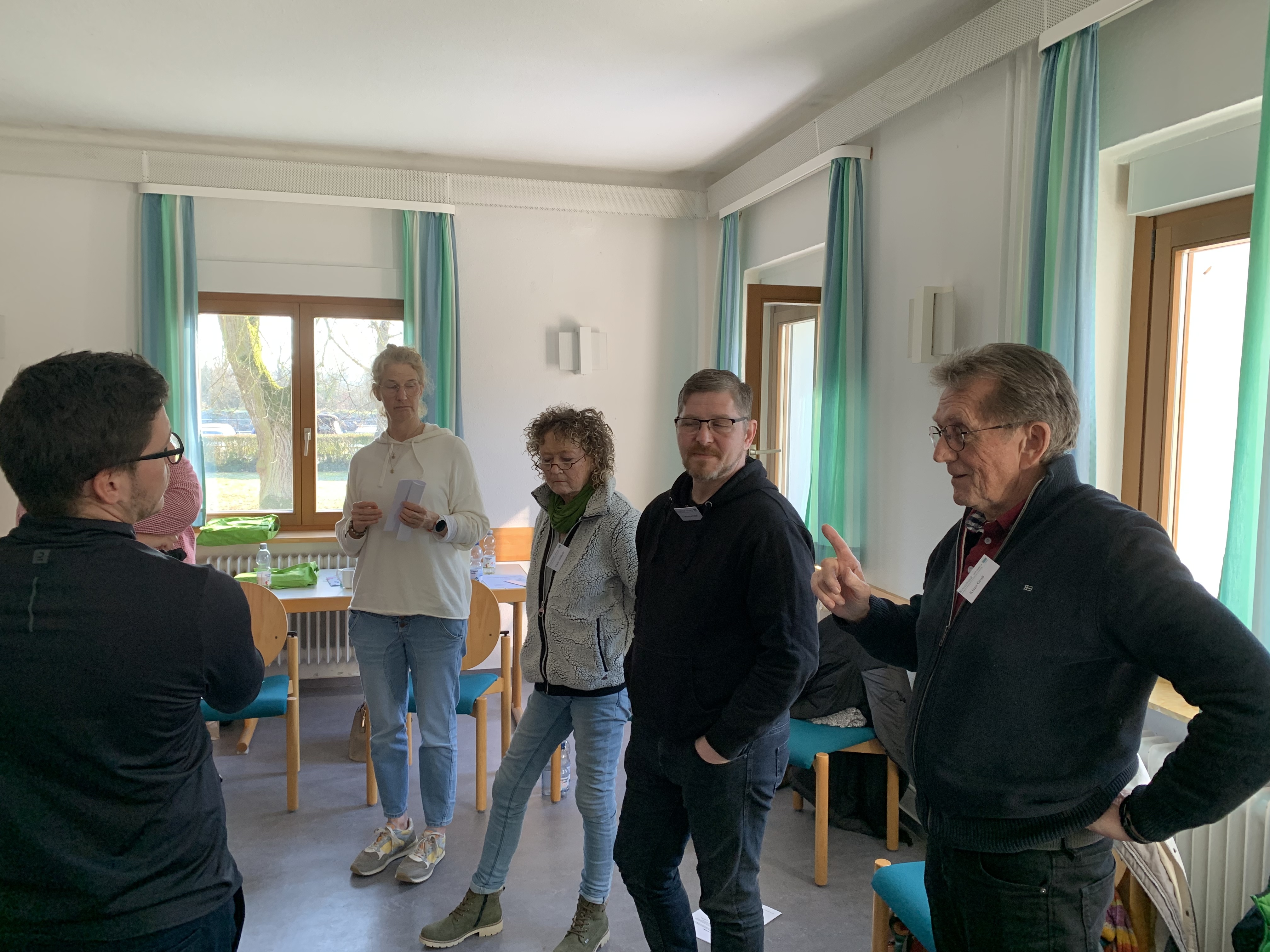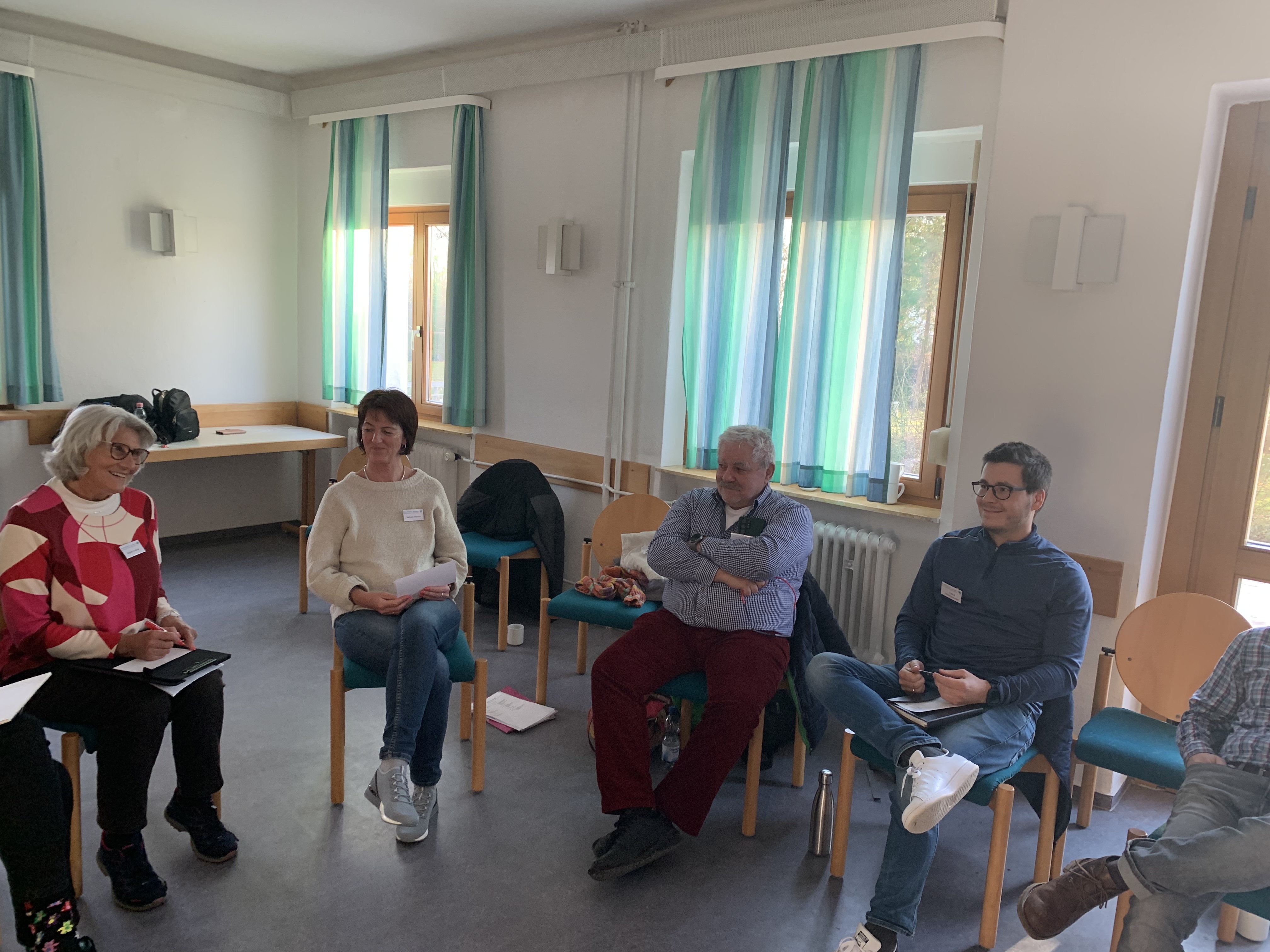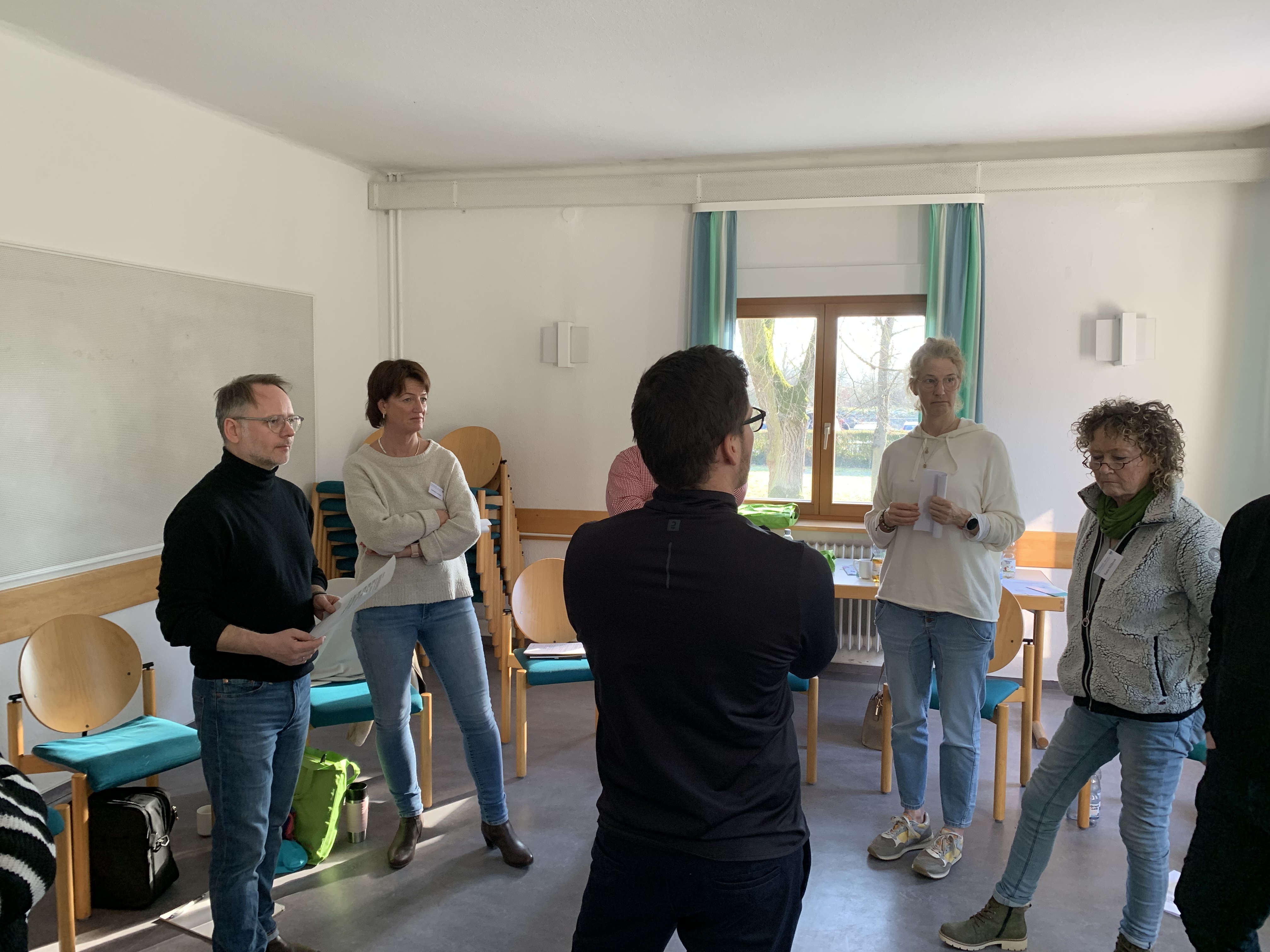 Bei der Ankunft wurde jeder herzlich begrüßt und ein Stehkaffee bot die perfekte Gelegenheit für erste Gespräche. Ursel Lux, Annette Mücke und Ausbildungsleiter Mathias Brendel hießen die Gruppe offiziell willkommen. Nach den ersten Informationen über Arbeits- und Zeitplan, Aufteilung der Zimmer etc. starteten wir mit einer lockeren Vorstellungsrunde, bei der die persönliche „Wetterlage“ erkundet wurde. Ein näheres Kennenlernen der Teilnehmenden durch ein Vier-Augen-Gespräche half zusätzlich dabei, das Eis zu brechen und eine vertraute Atmosphäre zu schaffen.
