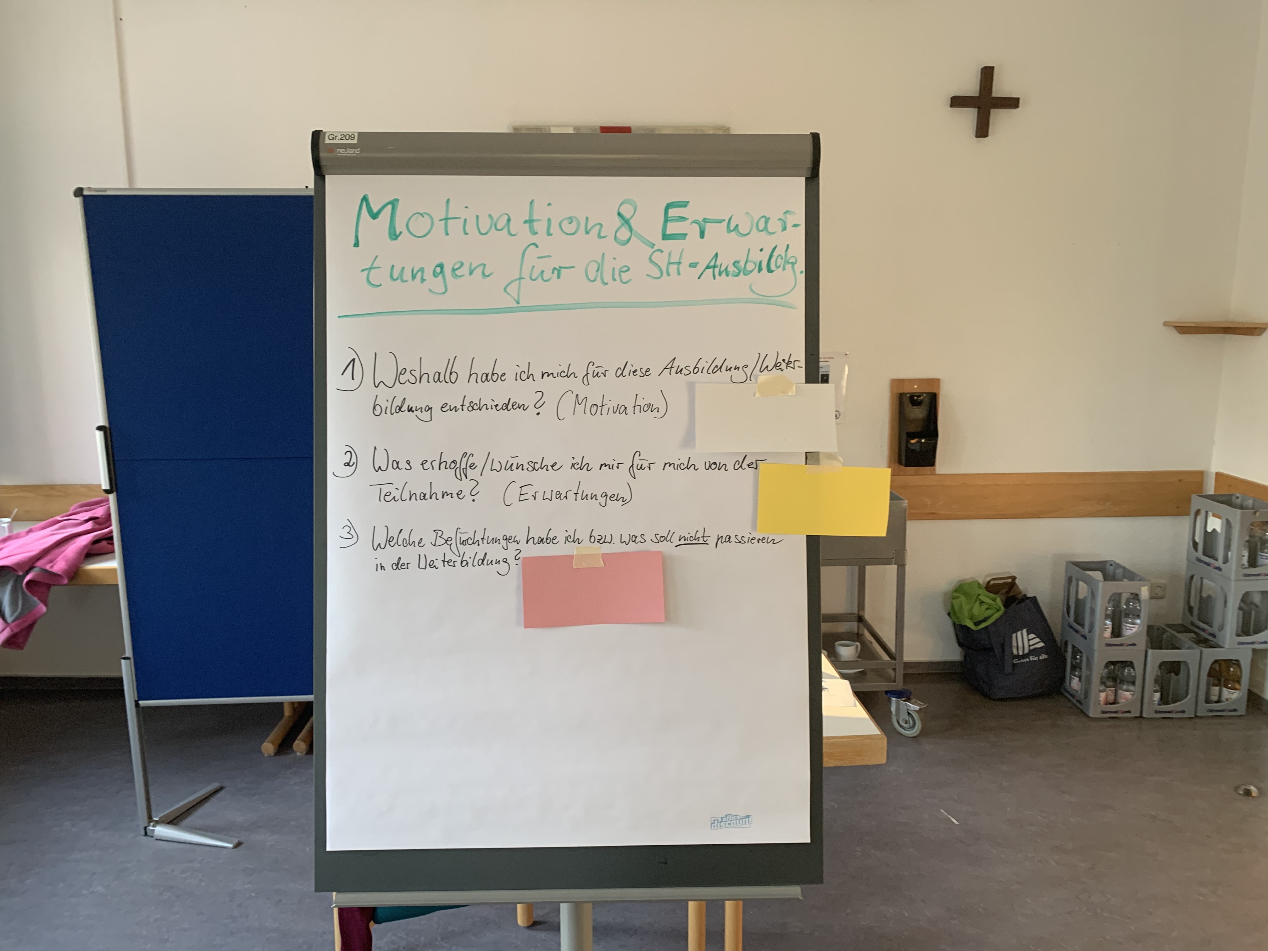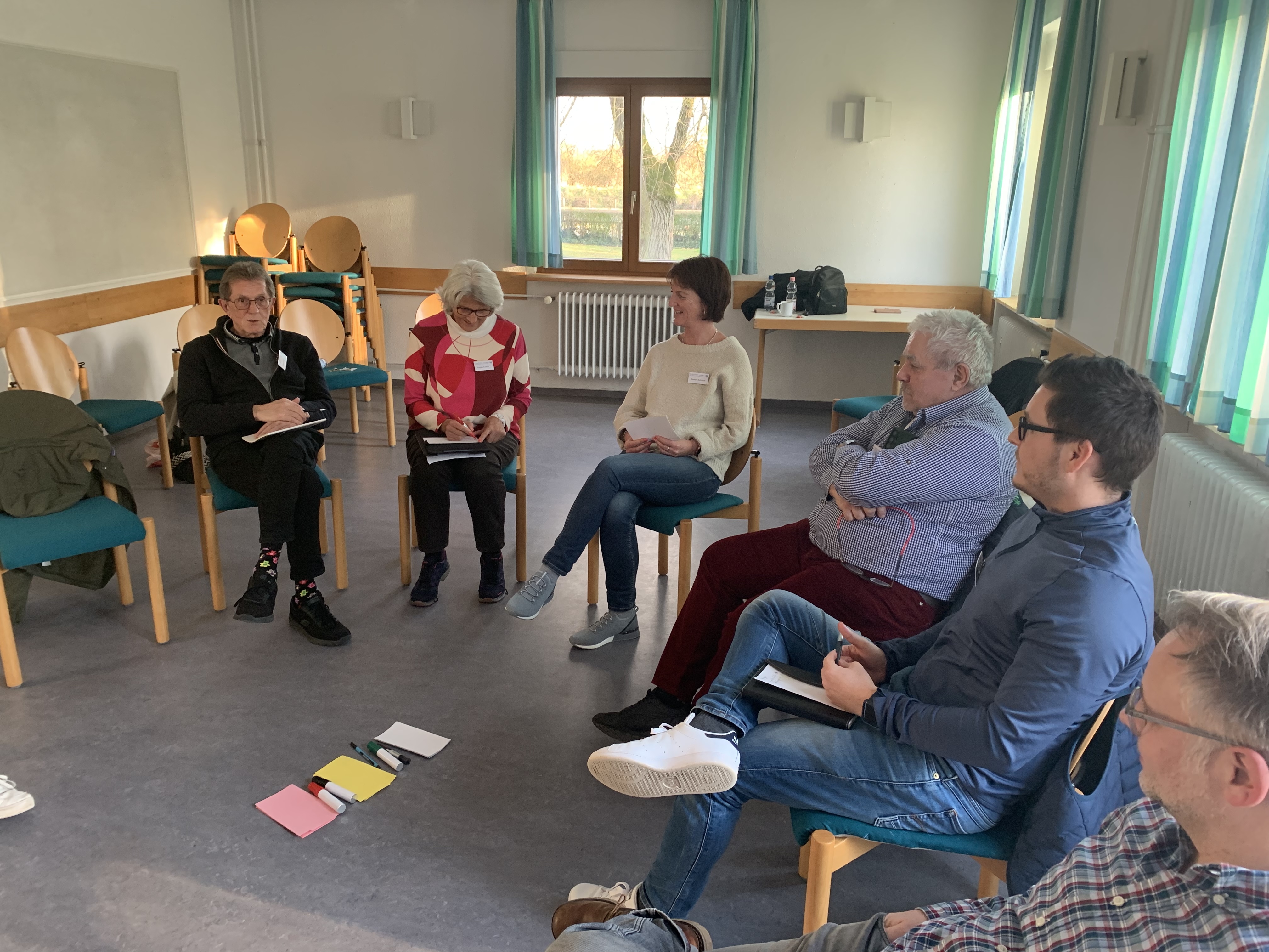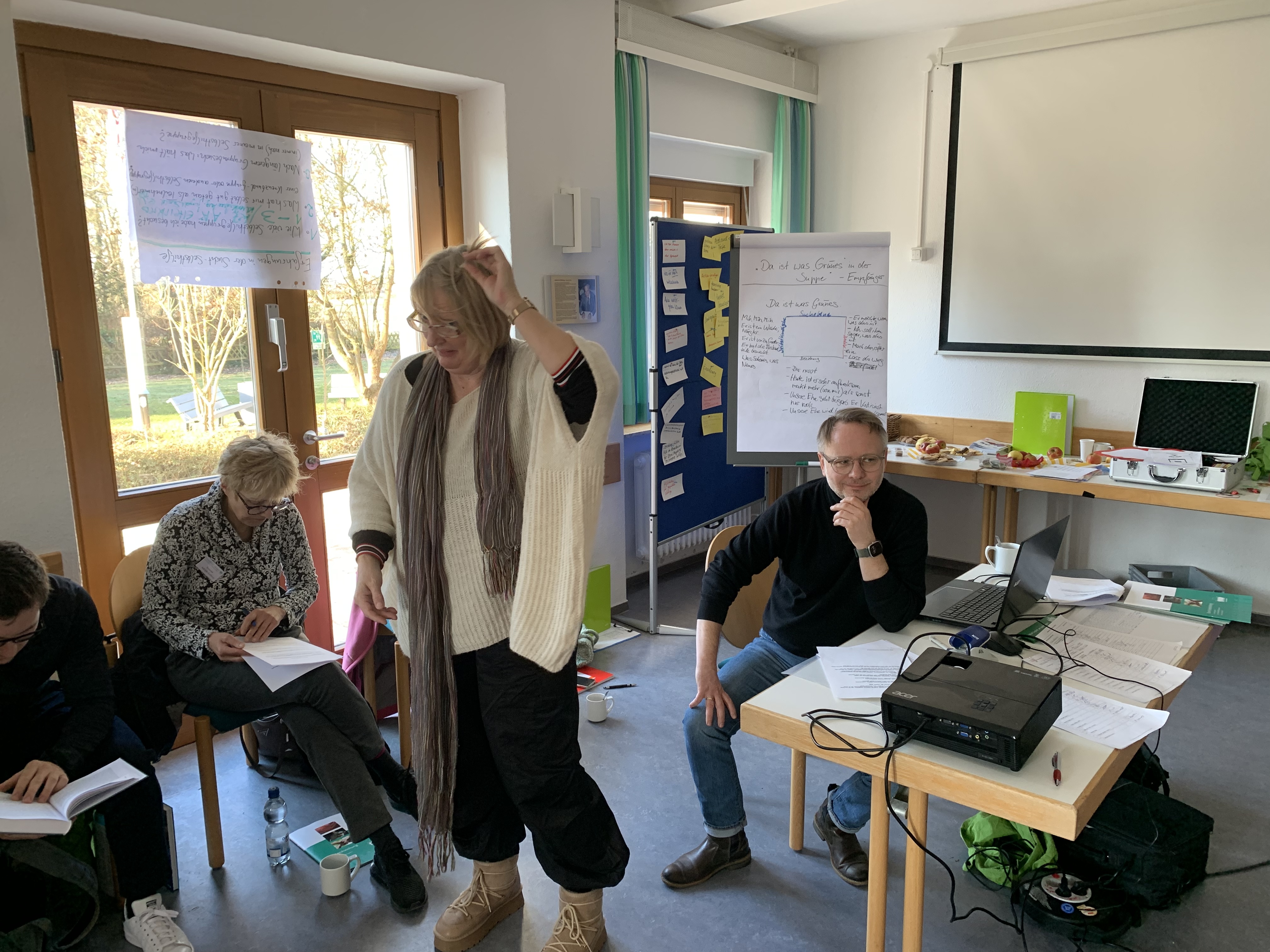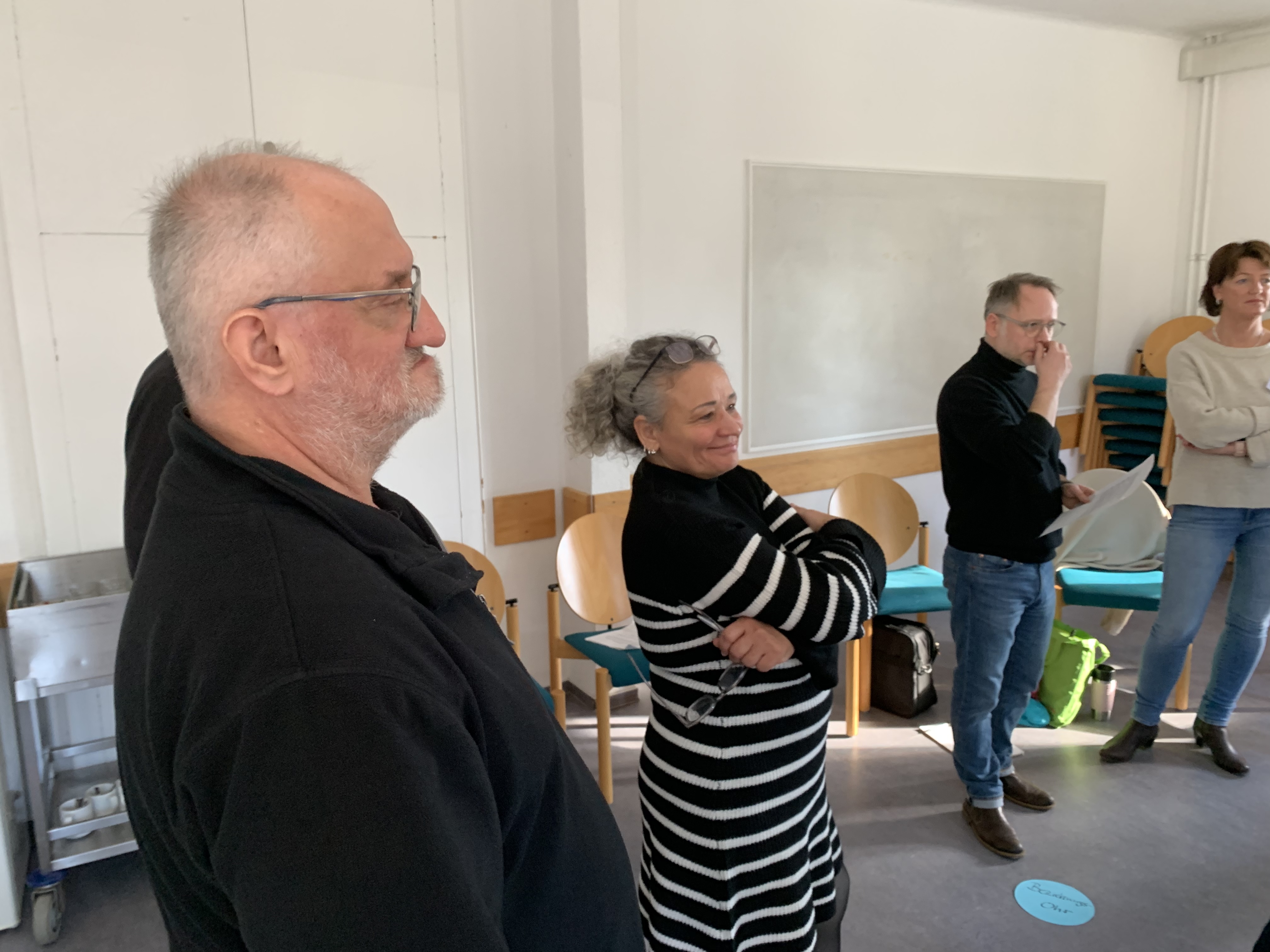 Bei der Ankunft wurde jeder herzlich begrüßt und ein Stehkaffee bot die perfekte Gelegenheit für erste Gespräche. Ursel Lux, Annette Mücke und Ausbildungsleiter Mathias Brendel hießen die Gruppe offiziell willkommen. Nach den ersten Informationen über Arbeits- und Zeitplan, Aufteilung der Zimmer etc. starteten wir mit einer lockeren Vorstellungsrunde, bei der die persönliche „Wetterlage“ erkundet wurde. Ein näheres Kennenlernen der Teilnehmenden durch ein Vier-Augen-Gespräche half zusätzlich dabei, das Eis zu brechen und eine vertraute Atmosphäre zu schaffen.
