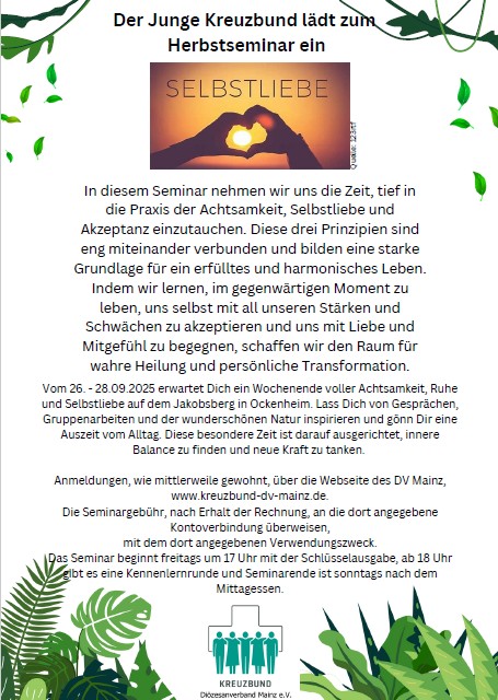 Junger Kreuzbund - Achtsamkeit, Selbstliebe und Akzeptanz Junger Kreuzbund Herbstseminar